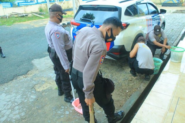Dukung keberhasilan tugas, personil Sat Binmas Polres Kep. Tanimbar giat pembersihan lingkungan kerja