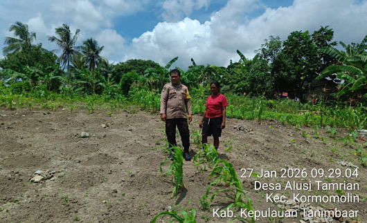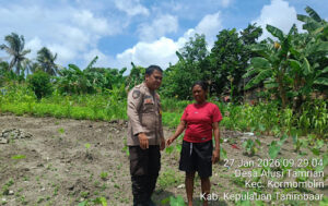Tribratanews.polrestanimbar.com – Polda Maluku, Kepolisian Resor Kepulauan Tanimbar, Dalam upaya memperkuat sinergi dengan Masyarakat serta mendukung produktivitas sektor Pertanian Desa, Bhabinkamtibmas Desa Alusi Tamrian, Brigpol A. S. G. SAINRESSY, melaksanakan kegiatan peninjauan lahan kebun milik Warga pada, Selasa (27/01/26).