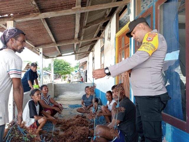 Tribratanews.polrestanimbar.com – Polda Maluku, Polres Kepulauan Tanimbar, bertempat di desa Lamdesar Barat RT 003 RW 002 Kecamatan Tanimbar Utara, Kabupaten Kepulauan Tanimbar, Bhabinkamtibmas Desa Lamdesar Barat Bripka Allan Aristo Tatuhey Sambangi warga binanan yg sedang duduk memasang bibit rumput laut, Selasa (06/06)