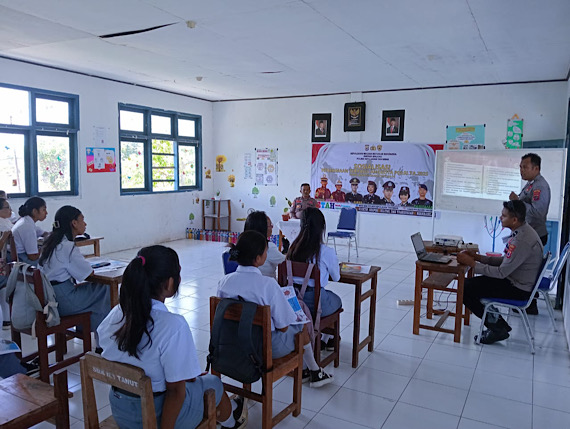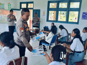 Tribratanews.polrestanimbar.com – Polda Maluku, Kepolisian Resor Kepulauan Tanimbar, Jaring minat para Pelajar, Polsek Tanimbar Utara gelar sosialisasi penerimaan Anggota Polri T.A. 2025 melalui giat sambang kepada para Siswa-Siswi SMK Negeri 1 Kepulauan Tanimbar di Kota Larat, Kecamatan Tanimbar Utara, Kabupaten Kepulauan Tanimbar, Kamis (31/10/24).