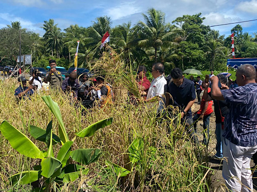 Tribratanews.polrestanimbar.com – Polda Maluku, Kepolisian Resor Kepulauan Tanimbar, Kapolsek Wertamrian, Ipda KURNIAWAN DWI SANDI, menghadiri Panen Raya Padi pada Lahan Kering yang dilaksanakan oleh Kelompok Tani “Bulatan” di Jalan Trans Yamdena, Desa Amdasa, Kecamatan Wertamrian, Kabupaten Kepulauan Tanimbar, Kamis (09/04/26).