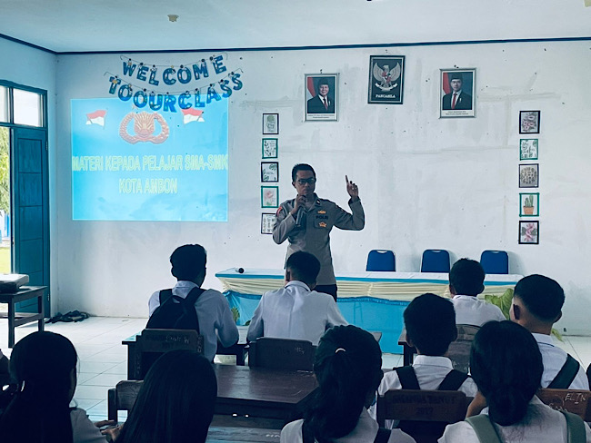Tribratanews.polrestanimbar.com – Polda Maluku, Kepolisian Resor Kepulauan Tanimbar, Dalam upaya membekali generasi muda dengan pemahaman hukum yang tepat, Wakapolsek Tanimbar Utara, Ipda RAHMIN B.B, S.H., M.Si., melaksanakan kegiatan sosialisasi hukum kepada Siswa-Siswi SMA Negeri 12 di Desa Ritabel, Kecamatan Tanimbar Utara, Kabupaten Kepulauan Tanimbar, Rabu (08/04/26).