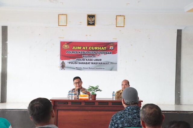 Tribratanews.polrestanimbar.com – Polda Maluku, Kepolisian Resor Kepulauan Tanimbar, Guna menggali inspirasi dan menjalin silaturahmi dengan Masyarakat di wilayah Kota Saumlaki, Polres Kepulauan Tanimbar menggelar Jumat Curhat wujudkan Polisi Keselibur (Polisi Sahabat Masyarakat), bertempat di Aula Bhayangkara Polres Kepulauan Tanimbar, Jumat (14/06/24).