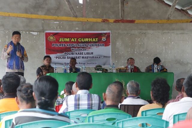 Tribratanews.polrestanimbar.com – Polda Maluku, Kepolisian Resor Kepulauan Tanimbar, Seusai melakukan kunjungan lewat Jumat Curhat kepada Warga Desa Atubul Da, Guna menyerap secara langsung keluhan serta saran dan masukan dari Masyarakat. Polres Kepulauan Tanimbar kembali menggelar Jumat Curhat di Desa Atubul Dol, Kecamatan Wertamrian, Kabupaten Kepulauan Tanimbar, Jumat (26/07/24).