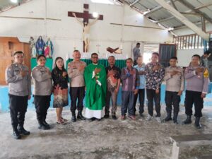 Tribratanews.polrestanimbar.com – Polda Maluku, Kepolisian Resor Kepulauan Tanimbar, Dalam rangka untuk memahami berbagai macam kondisi Kamtibmas di lapangan, Satuan Binmas Polres Kepulauan Tanimbar menggelar kegiatan “Minggu Kasih” di Gereja Katholik Santa Maria Bunda Allah, Desa Amdasa, Kecamatan Wertamrian, Kabupaten Kepulauan Tanimbar, Minggu (14/07/24).