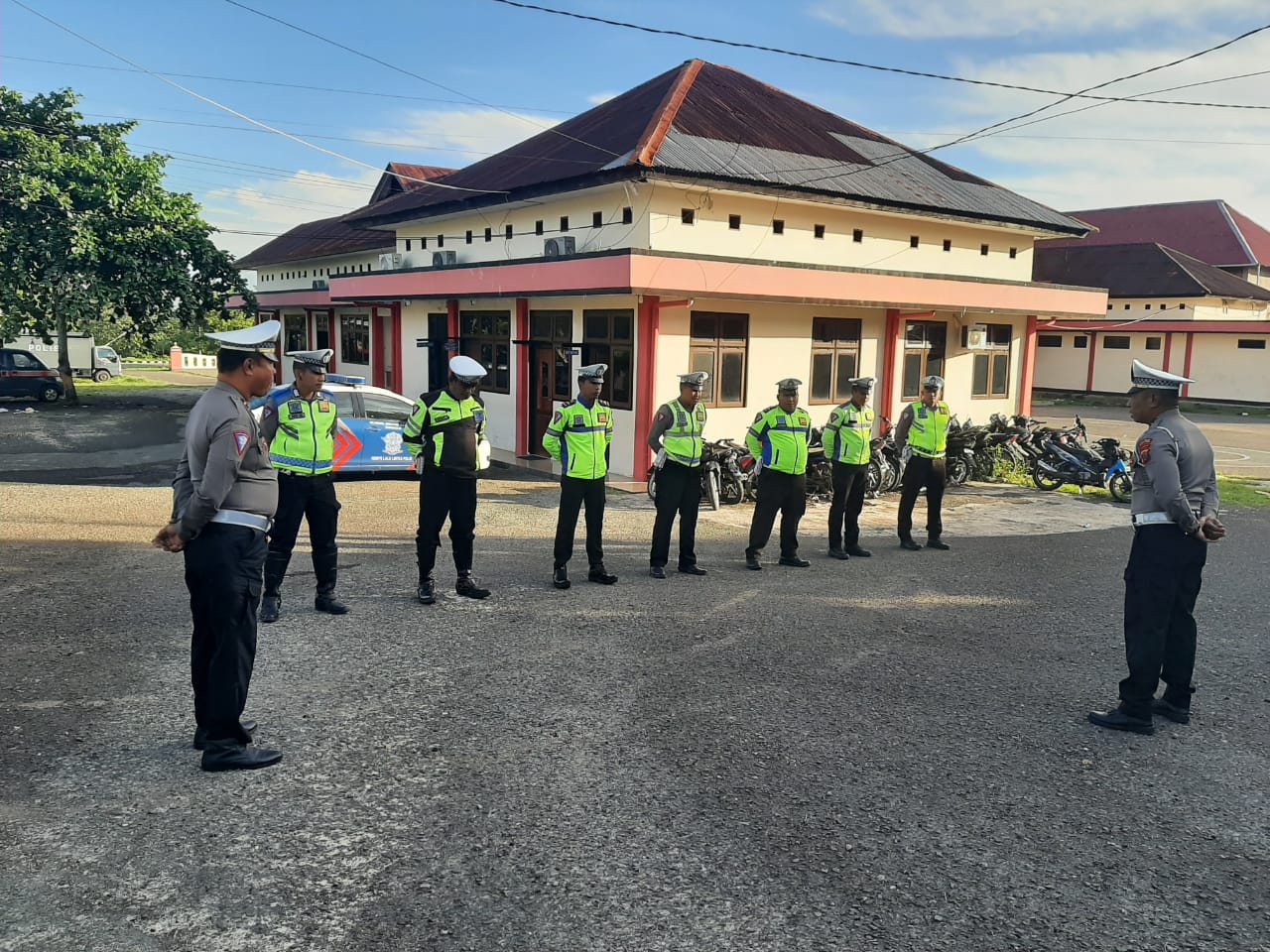 Sebelum pelaksanaan Giat Patroli dalam memberikan Himbauan Serta Pengaturan Sat Lantas, diawali dengan pelaksanaan Apel pengecekan dan Kesiapan Personil yang dipimpin oleh KBO Sat lantas Ipda A. Melsasail, Bersama 8 (Delapan) personil Sat Lantas Polres Kepulauan Tanimbar.