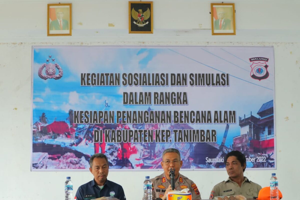 Tribratanews.polrestanimbar.com – Polda Maluku, Polres Kepulauan Tanimbar, Kegiatan Sosialisasi dan Simulasi dalam rangka kesiapan Penanggulangan Bencana Alam digelar di Aula Bayangkara, dibuka langsung Kapolres Kepulauan Tanimbar AKBP Umar Wijaya, S.I.K., Selasa (29/11).