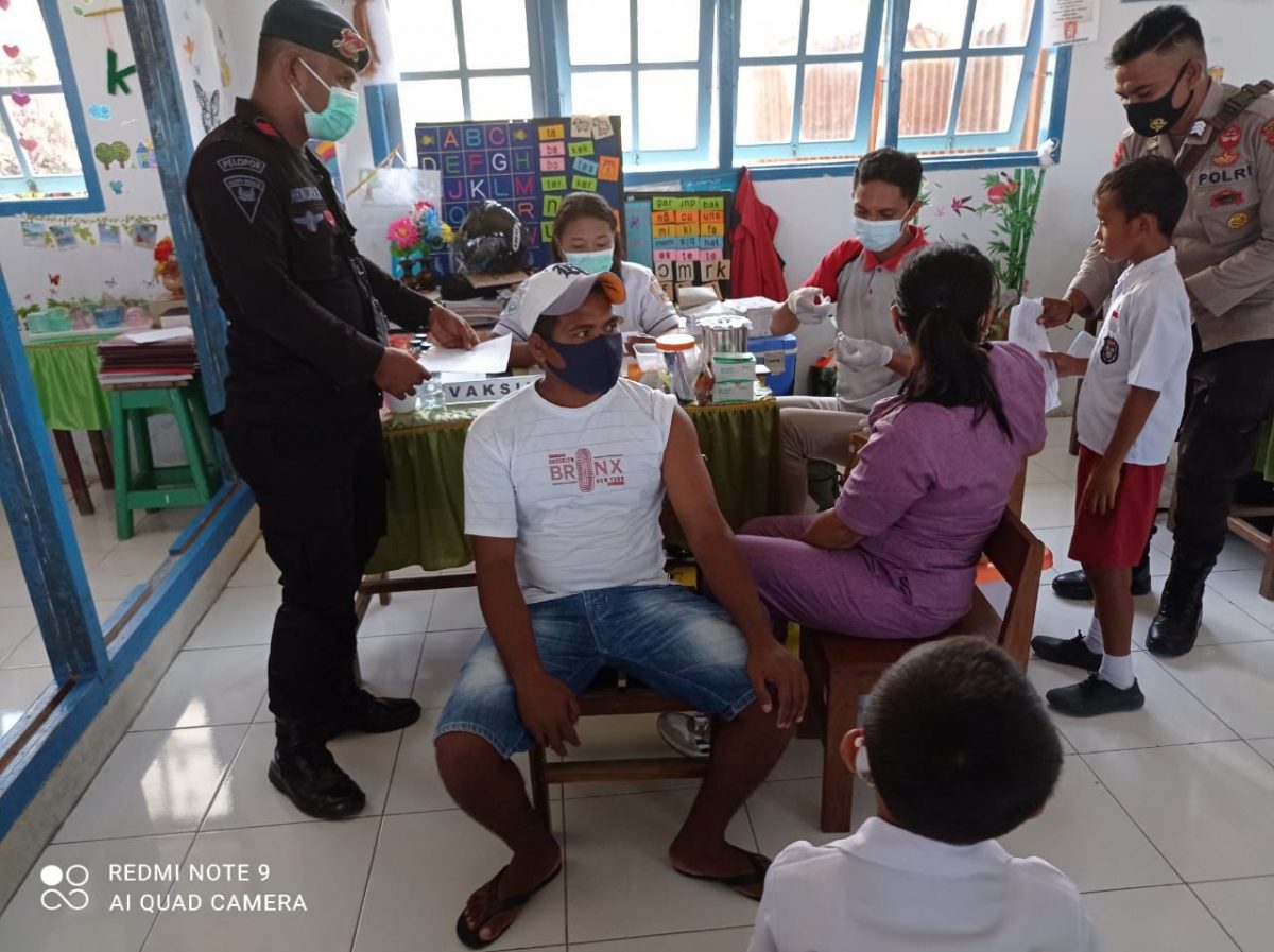 Tribratanews.polrestanimbar.com – Polda Maluku, Polres Kepulauan Tanimbar, Gerai Vaksinasi Mobile Presisi dosis 1, 2 dan 3, Polres Tanimbar suntik 131 orang di SD Naskat Ignasius I dan II di desa Olilit Timur. Senin (25/04/2022).