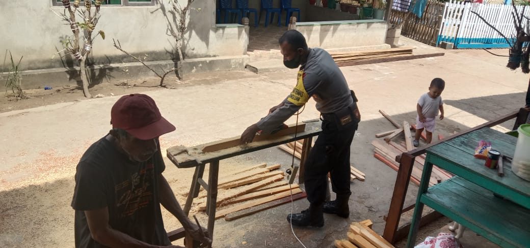 Tribratanews.polrestanimbar.com – Polda Maluku, Polres Maluku Tenggara Barat, Kamis 03 September 2020, pukul 09.00 wit bertempat di Desa Lelingluan Kecamatan Tanimbar Utara Kabupaten Kepulauan Tanimbar Bhabinkamtibmas Desa Lelingluan Bripka S. H. Kelmaskosu melaksanakan Giat Bakti Sosial bersama warga membuat pagar milik Bpk. Roby Ratisa dan tak lupa memberikan Penyuluhan tentag Adaptasi Kebiasan Baru.