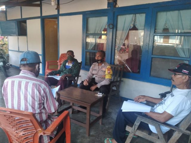 Bhabinkamtibmas Desa Sifnana Bripka Petrus Keliduan menyambangi warga masyarakat Desa Sifnana yang sementara santai sekaligus Bhabinkamtibmas memberikan Bimbingan dan Penyuluhan (Binluh) tentang Adaptasi Kebiasaan Baru dalam menghadapi wabah Virus Corona (Covid-19).