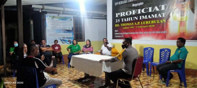 Tribratanews.polrestanimbar.com – Polda Maluku, Polres Maluku Tenggara Barat, Minggu 15 November 2020, pukul 18.00 wit bertempat di Teras Rumah Pastoran Gereja Ratu Rosario Suci Olilit Kecamatan Tanimbar Selatan Kabupaten Kepulauan Tanimbar Bhabinkamtibmas Desa Olilit Timur Bripka Antonius Dasfamudi melaksanakan kegiatan Duduk Bacarita Kamtibmas (DBK) tentang Dampak Minuman Keras Lokal (Sopi) Sehingga Meresahkan Warga Desa Olilit Timur dengan Berbagai Perbuatan Kejahatan.