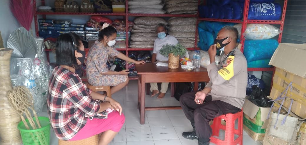 Tribratanews.polrestanimbar.com – Polda Maluku, Polres Maluku Tenggara Barat, Sabtu 09 Januari 2021, pukul 14.20 wit, bertempat di Desa Sifnana, Kecamatan Tanimbar Selatan, Kabupaten Kepulauan Tanimbar Bhabinkamtibmas Desa Sifnana Bripka Petrus Keliduan melaksanakan giat Door to Door Sistem (DDS) dalam bentuk Kunjungan ke tempat Usaha milik Ibu J. Sarbunan untuk melaksanakan sosialisasi Protokol Kesehatan Pencegahan Penyebaran dan Penularan Covid-19.