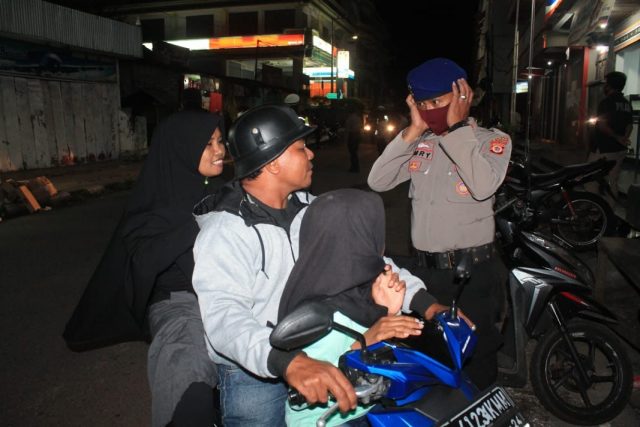 Giat Patroli Cipkon, personil Patroli Polres MTB himbau masyarakat Gunakan helm dan Masker serta tidak lawan arus