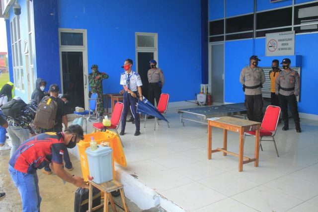 Kegiatan pengamanan kedatangan para pelaku perjalanan ini dipimpin oleh Kasat Polair Polres Kepulauan Tanimbar, Ipda J. Seleky selaku Kasatgasres Ban Ops Aman Nusa II.