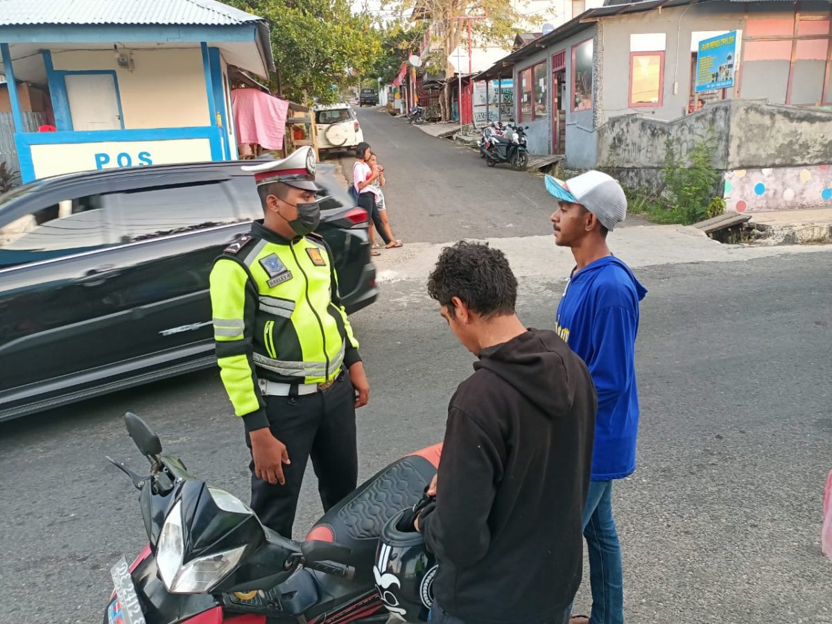 Tribratanews.polrestanimbar.com – Polda Maluku, Polres Kepulauan Tanimbar, pukul 16.00 wit, personil Unit Turjawali Satuan Lalu lintas Polres Kepulauan Tanimbar melaksanakan kegiatan Penjagaan Pos tetap dan Penindakan hukum terhadap Pelanggar yang ditemukan langsung secara kasat mata di lapangan. Kamis (28/10/2021).