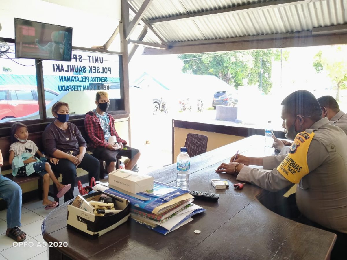 Tribratanews.polrestanimbar.com – Polda Maluku, Polres Maluku Tenggara Barat, Selasa 08 September 2020, Jam 10.18 wit, bertempat di Ruang Sentra Pelayanan Polsek Tanimbar Selatan Polres Kepulauan Tanimbar Bhabinkamtibmas Desa Olilit Timur Bripka Antonius Dasfamudi laksanakan giat Penaganan Permasalahan (Problem Solving ) Perbuatan Tidak Menyenangkan dan Pengancaman.