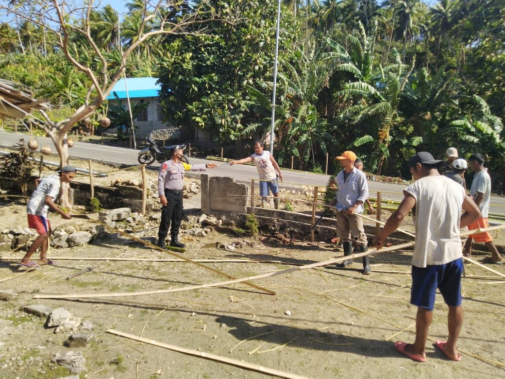 Tribratanews.polrestanimbar.com – Polda Maluku, Polres Maluku Tenggara Barat, Selasa 08 September 2020, pukul 13.50 wit bertempat di Desa Amdasa Kecamatan Wertamrian Kabupaten Kepulauan Tanimbar Bhabinkamtibmas Desa Amdasa Aipda J.I.M. Manullang menyambangi masyarakat yang sedang melaksanakan giat Bhakti Sosial dalam rangka Pembuatan Pagar di Desa.
