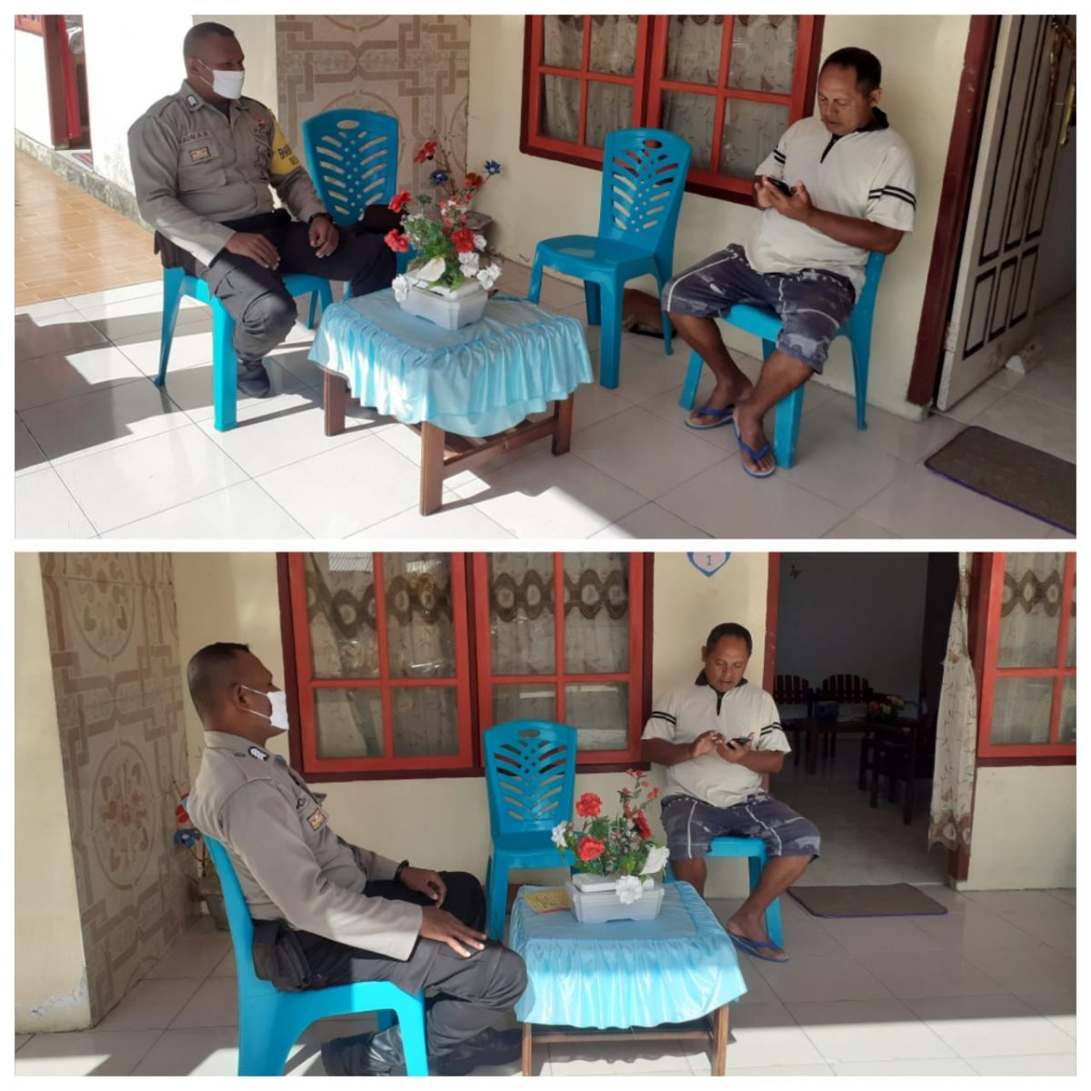 Tribratanews.polrestanimbar.com – Polda Maluku, Polres Maluku Tenggara Barat, Pukul 10.00 wit bertempat di Desa Ritabel Kecamatan Tanimbar Utara Kabupaten Kepulauan Tanimbar Bhabinkamtibmas Desa Ritabel Bripka S. Rahantaly menyambangi ketua majelis jemaat Gereja Protestan Maluku ( GPM ) Larat kota Bapak S.J. Slarmat, S.Th sambil mengobrol, dan Sampaikan Tatanan Kehidupan Baru ( New Normal ).