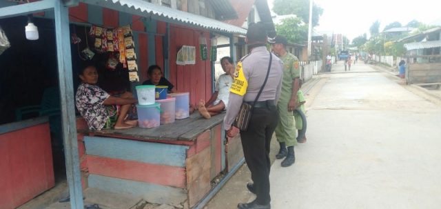 Tribratanews.polrestanimbar.com – Polda Maluku, Polres Maluku Tenggara Barat, Selasa 01 September 2020, pukul 09.00 wit, bertempat di Desa Wermatang, Kecamatan Wermatang, Kabupaten Kepulauan Tanimbar Bhabinkamtibmas Desa Wermatang Bripka K. Fenanlampir bersama Danton Linmas Desa Wermatang melaksanakan giat sosialisasi pemberlakuan protokol kesehatan Covid-19, kepada warga yang sementara duduk berkumpul di kios milik Ibu Sarci Palapia.