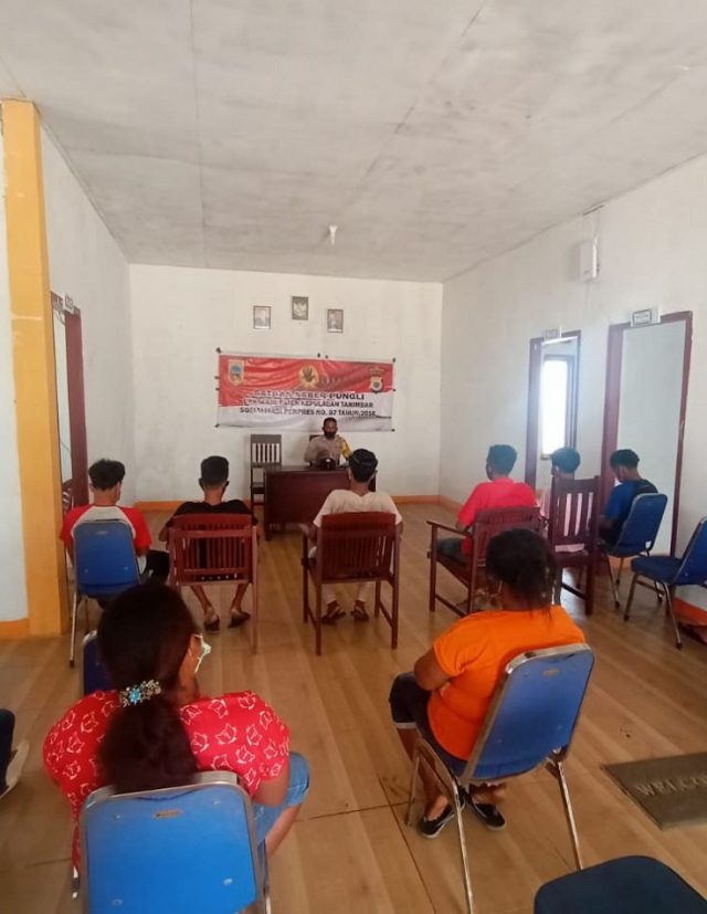 Tribratanews.polrestanimbar.com – Polda Maluku, Polres Maluku Tenggara Barat, Minggu 11 Oktober 2020, pukul 16.00 wit, Bhabinkamtibmas Desa Adaut Brigpol M. I. Lambiombir melaksanakan Sosialisasi Perpres Nomor 87 tahun 2016 tentang Satuan Tugas Sapuh Bersih Pungutan Liar / Satgas Saber Pungli kepada Warga Desa yang bertempat di salah satu rumah warga.