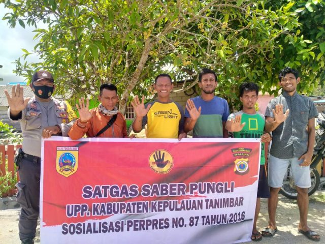 Tribratanews.polrestanimbar.com – Polda Maluku, Polres Maluku Tenggara Barat, Selasa 08 September 2020, pukul 11.30 wit bertempat di RT.10 tepatnya di depan Rumah Bapak Marthen Lamere di Desa Bomaki Kecamatan Tanimbar Selatan, Kabupaten Kepulauan Tanimbar Bhabinkamtibmas Desa Bomaki Bripka S.E.S. Mitakda melaksanakan Giat Sosialisasi Perpres No 87 Tahun 2016 tentang Satgas Saber Pungli (Satuan Tugas Sapu Bersih Pungutan Liar) kepada Masyarakat RT.10 Desa Bomaki Kecamatan Tanimbar Selatan Kabupaten Kepulauan Tanimbar.