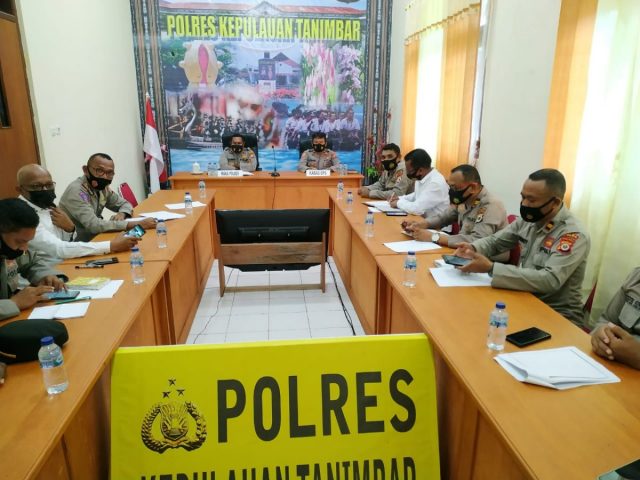 Tribratanews.polrestanimbar.com – Polda Maluku, Polres Maluku Tenggara Barat, Senin 22 Maret 2021, pukul 11.00 wit, bertempat di ruang Vicon, dilaksanakan kegiatan Video Cenference tentang Sosialisasi Direktif Kapolri tentang Hubungan Tata Cara Kerja (HTCK) Pelayanan Publik Terpadu Polri pada tingkat Polda, Polres, dan Polsek Jajaran.