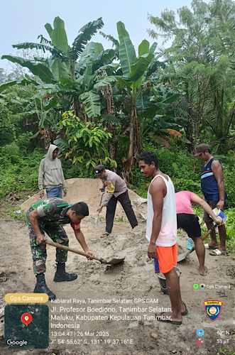 Seperti yang dilakukan oleh Bhabinkamtibmas Desa Kabiarat, Polsek Tanimbar Selatan, Aipda J. V. ANDRIES bersama Babinsa Serda W. LAKAWEAN ikut berbaur sekaligus membantu Warga dalam pengecoran pondasi rumah kebun di Desa Kabiarat, Kecamatan Tanimbar Selatan, Kabupaten Kepulauan Tanimbar, Rabu (25/03/25).