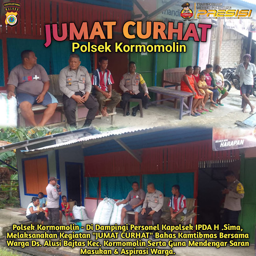 Donatus Titirloloby sangat menyambut baik serta mengapresiasi kehadiran Kapolsek Kormomolin bersama anggota dalam giat jumat curhat di Desa Alusi Batjasi, sehingga ia mengharapkan kegiatan ini terus berlanjut.