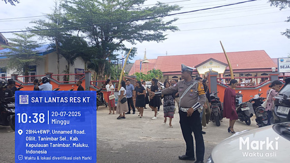 Tribratanews.polrestanimbar.com – Polda Maluku, Kepolisian Resor Kepulauan Tanimbar, Dalam upaya untuk memberikan pelayanan terbaik kepada Masyarakat, Satuan Lalu Lintas Polres Kepulauan Tanimbar lakukan pengamanan dan pengaturan saat perayaan Ibadah Minggu pada, Minggu (20/07/25) pagi.