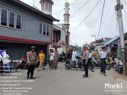 Tribratanews.polrestanimbar.com – Polda Maluku, Kepolisian Resor Kepulauan Tanimbar, Sebagai wujud nyata kehadiran Negara untuk memberikan rasa aman dan nyaman kepada Masyarakat, jajaran Sat Sat Lantas Polres Kepulauan Tanimbar lakukan pengamanan (pam) dan pengaturan (gatur) saat Ibadah Sholat Jumat Berjamaah, Jumat (12/12/25).