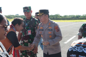 Tribratanews.polrestanimbar.com – Polda Maluku, Kepolisian Resor Kepulauan Tanimbar, Kapolres Kepulauan Tanimbar AKBP UMAR WIJAYA, S.I.K., M.H., hadir bersama Forum Kordinasi Pimpinan Daerah (Forkopimda) sambut kedatangan Bupati dan Wakil Bupati Kepulauan Tanimbar di Bandara Mathilda Batlayeri, Kabupaten Kepulauan Tanimbar, Kamis (06/03/25).