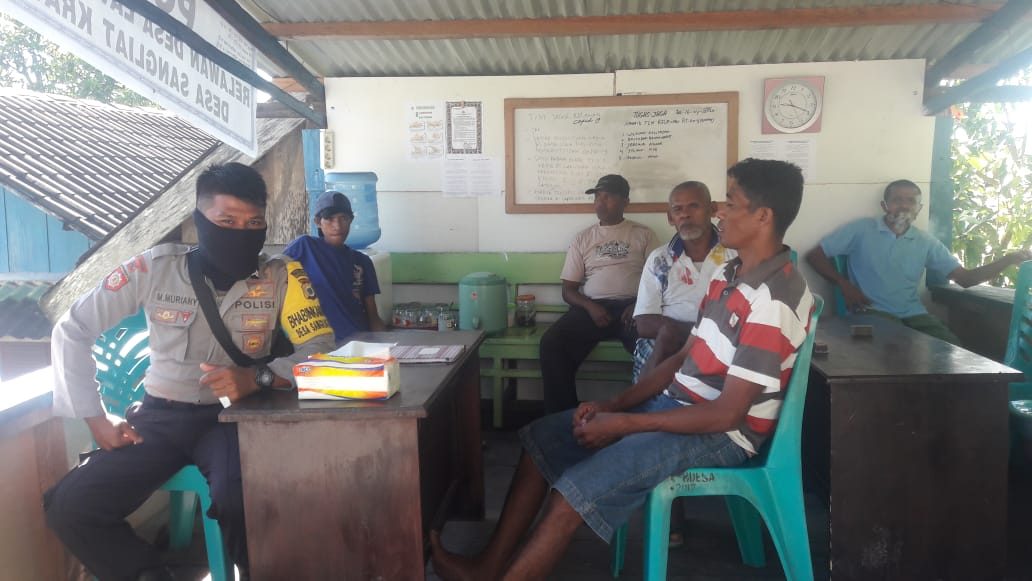 Kedatangan Bhabinkamtibmas pada Posko Covid 19 Desa Sangliat Krawain, untuk melihat dan memantau aktifitas Posko maupun kegiatan masyarakat yang keluar masuk pada Desa.