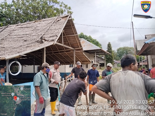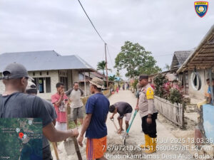 Tribratanews.polrestanimbar.com – Polda Maluku, Kepolisian Resor Kepulauan Tanimbar, Sebagai bentuk kepedulian Polri dalam memberikan pelayanan terbaik kepada Masyarakat, Bhabinkamtibmas Desa Alusi Batjas, Polsek Kormomolin Aipda N. REVILELI bantu Warga lakukan pembangunan jalan rabat beton, Sabtu (19/07/25) pagi.