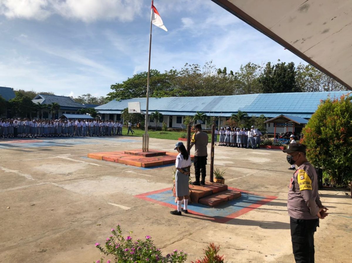 Tribratanews.polrestanimbar.com – Polda Maluku, Polres Kepulauan Tanimbar, Bhabinkamtibmas Polsek Tanimbar Selatan hadir di Sekolah SMA Negeri 8 Saumlaki dan berikan Pesan Kamtibmas, Senin (10/10).
