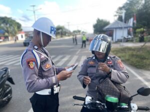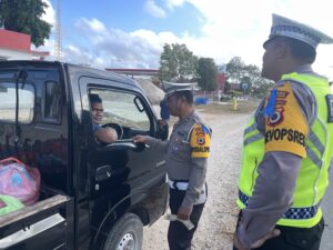 “Untuk kegiatan hari ini, kami melakukan teguran terhadap 15 pelanggar, Leaflet sebanyak 25, pembagian Stiker sebanyak 25, Pengaturan, Penjagaan, Patroli dan Sosialisasi” ungkap Kasat Lantas.