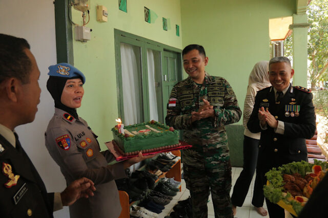 Seusai menyerahkan kue Ulang Tahun, AKBP Umar Wijaya, S.I.K., mengucapkan selamat Ulang Tahun Tentara Nasional Indonesia (TNI) yang ke-78. Kejutan tersebut merupakan bagian dari Soliditas Polri kepada TNI, dimana hal tersebut menjadi modal penting dalam menjaga kondusifitas di Wilayah khususnya Kabupaten Kepulauan Tanimbar.