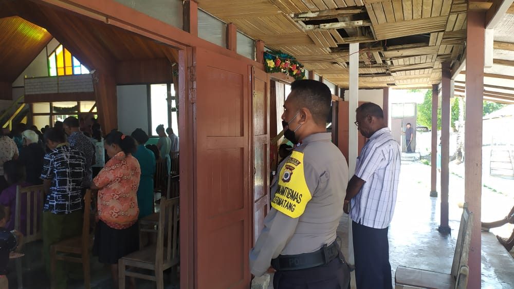 Tribratanews.polrestanimbar.com – Polda Maluku, Polres Maluku Tenggara Barat, Minggu 02 Agustus 2020, pukul 09.00 wit, bertempat di Gereja GKPII Imanuel Jemaat Lermatang  Kecamatan Tanimbar Selatan Kabupaten Kepulauan Tanimbar Bhabinkamtibmas Lermatang Briptu T. O. Daniel, S.H., menghadiri dan mengamankan jalannya kegiatan Ibadah Minggu.