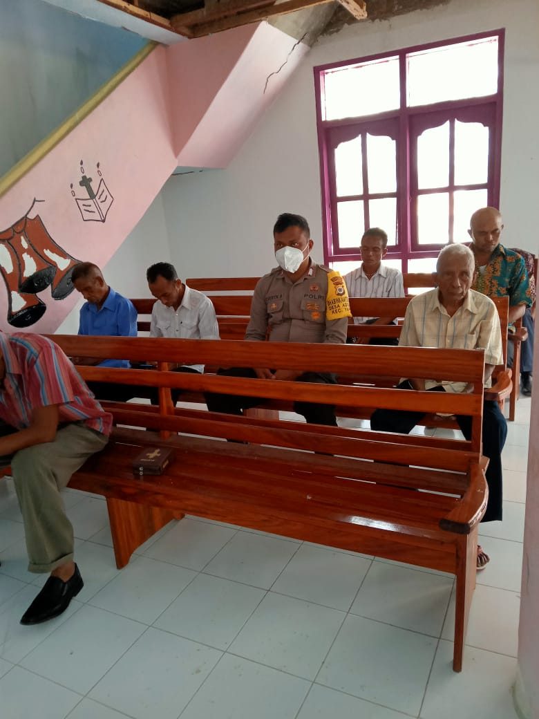 Tribratanews.polrestanimbar.com – Polda Maluku, Polres Kepulauan Tanimbar, Bhabinkamtibmas desa Adodo Fordata Polsek Fordata Bripka E. Bembuain Ikuti, sekaligus amankan kegiatan Kebaktian Minggu di Gereja GPM Immanuel desa Adodo Fordata, Kecamatan Fordata. Minggu (04/09).
