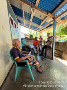 Tribratanews.polrestanimbar.com – Polda Maluku, Polres Kepulauan Tanimbar, implementasi program quick wins presisi Polri Optimasilasi Pelayanan Publik, dan tindaklanjut arahan Kapolres Kepulauan Tanimbar AKBP Umar Wijaya, S.I.K., Bhabinkamtibmas desa Watidal, Aipda M. Serhalawan, melakukan kegiatan Sambang terhadap warga binaan yang sementara duduk di depan Rumah salah satu warga di RT 002 RW 001 dan beri pesan Kamtibmas serta bagikan nomor kontak dan medsos aduan layanan Polsek Tanimbar Utara, Sabtu (03/12).