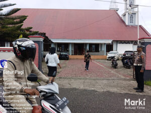 Tribratanews.polrestanimbar.com – Polda Maluku, Kepolisian Resor Kepulauan Tanimbar, Dalam upaya untuk memberikan pelayanan yang terbaik kepada Masyarakat saat perayaan Ibadah di hari Minggu bagi Umat Kristiani, Satuan Lalu Lintas Polres Kepulauan Tanimbar rutin lakukan pengamanan (pam) dan pengaturan (gatur) lalu lintas.