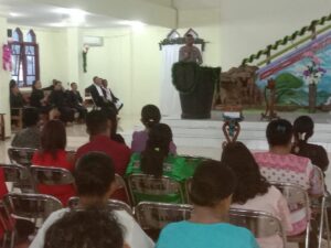 Tribratanews.polrestanimbar.com – Polda Maluku, Polres Kepulauan Tanimbar, Bertempat di gedung Gereja Imanuel Jemaat GPM Adaut, Kapolsek Selaru Iptu Alo Titirloloby melakukan giat Mimbar Kamtibmas sekaligus mengikuti Ibadah Syukuran Perjamuan Kudus, Minggu (8/1/2023).