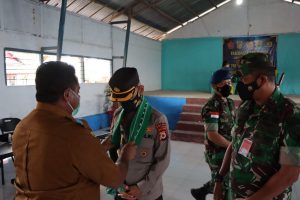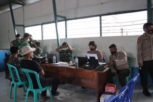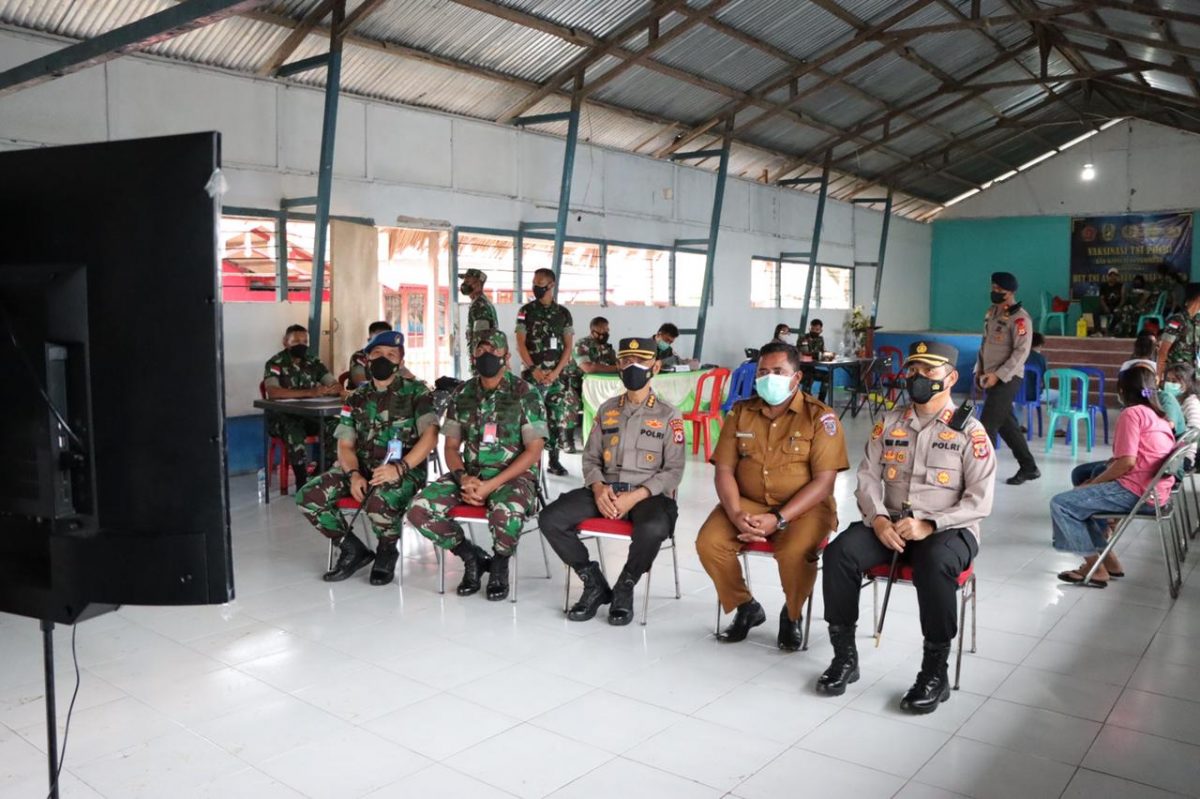 Tribratanews.polrestanimbar.com – Polda Maluku, Polres Kepulauan Tanimbar, Irwasda Maluku Kombes Pol Edy Yudianto didampingi Kapolres Tanimbar AKBP Umar Wijaya, S.I.K., Danlanud IG Dewanto Letkol (Pas) Yohanes Mozes Paulus, S.Pd., Dansatrad 245 Saumlaki Letkol Lek. Fusi Arizona, ST.,M.I.Pol., dan Waka Polres Tanimbar Kompol Hendra Y. P. Haurissa, S.H., hadiri kegiatan Vicon Vaksinasi massal yang digelar Polres Tanimbar bersama TNI dan Pemda di desa Tumbur kecamatan Wertamrian kabupaten kepulauan Tanimbar dan dipantau secara virtual oleh Kapolri Jenderal Polisi Drs. Listyo Sigit Prabowo, M.Si. Selasa (29/03/2022).