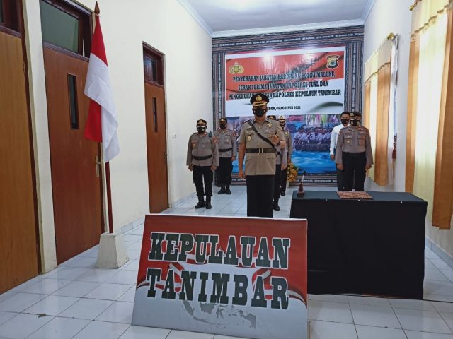 Tribratanews.polrestanimbar.com – Polda Maluku, Polres Kepulauan Tanimbar, Kamis, 05 Agustus 2021, pukul 09.00 wit, bertempat di ruang Vicon Polres Kepulauan Tanimbar, dilaksanakan Upacara Pengukuhan Jabatan Kapolres Kepulauan Tanimbar setelah sebelumnya dengan sebutan Kapolres Maluku Tenggara Barat yang dijabat oleh AKBP Romi Agusriansyah S.I.K., yang dipimpin langsung oleh Kapolda Maluku Irjen Pol. Drs. Refdi Andri, M.Si., secara Virtual.