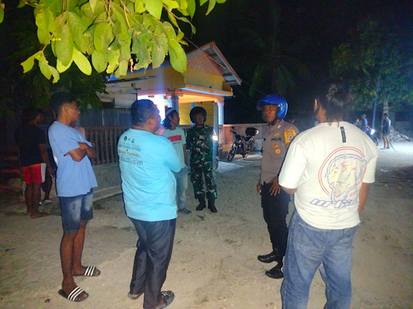 Tribratanews.polrestanimbar.com – Polda Maluku, Kepolisian Resor Kepulauan Tanimbar, Demi menjaga keamanan dan ketertiban Masyarakat (Kamtibmas), Bhabinkamtibmas Desa Lermatang Bripka MARIO UREN bersama Babinsa Sertu O. LETELAY dan Anggota Linmas yang tergabung dalam 3 Pilar melaksanakan patroli dialogis pada, Sabtu (21/09/25) malam.