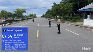 Sebagaimana yang tampak dilakukan oleh Satuan Lalu Lintas Polres Kepulauan Tanimbar dalam memberikan pelayanan prima melalui giat pengaturan lalu lintas pada pagi hari di beberapa titik rawan yang ada di Wilayah Kota Saumlaki, Kecamatan Tanimbar Selatan, Kabupaten Kepulauan Tanimbar, Senin (20/01/25) pagi.