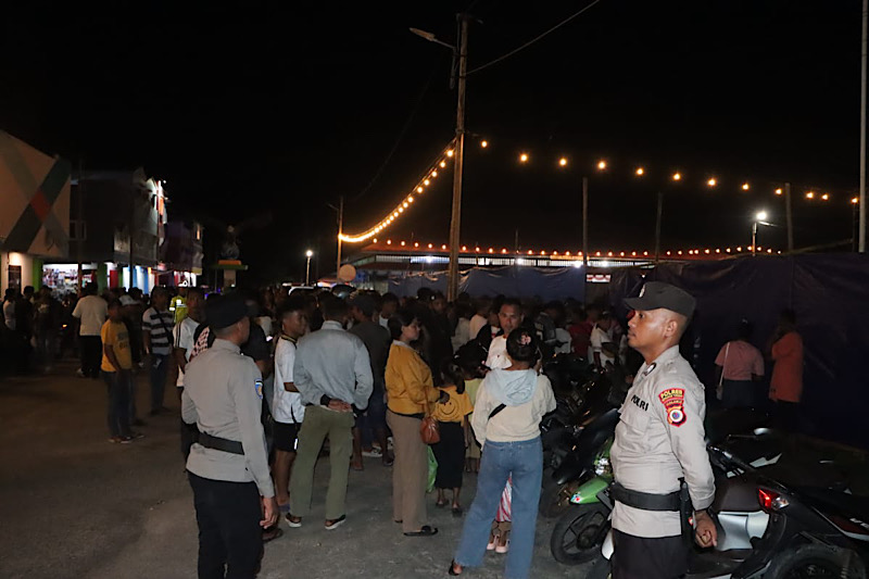 Tribratanews.polrestanimbar.com – Polda Maluku, Kepolisian Resor Kepulauan Tanimbar, Sejumlah Personel gabungan Polres Kepulauan Tanimbar dikerahkan untuk mengamankan jalannya konser amal dalam rangka penggalangan dana untuk pembangunan gedung Gereja Eras Lingat.