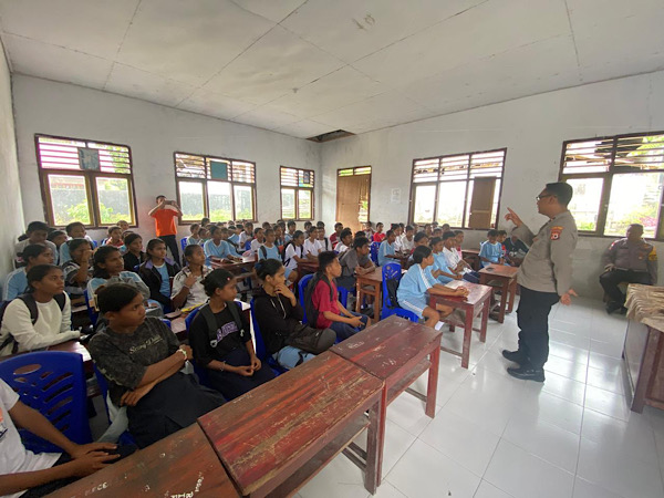 Tribratanews.polrestanimbar.com – Polda Maluku, Kepolisian Resor Kepulauan Tanimbar, Guna mengantisipasi potensi konflik dan kenakalan remaja di wilayah hukumnya, Kapolsek Wertamrian, Ipda KURNIAWAN DWI SANDI memimpin langsung sosialisasi kepada para siswa di SMP St. Agustinus Sangliat Dol, Kecamatan Wertamrian.