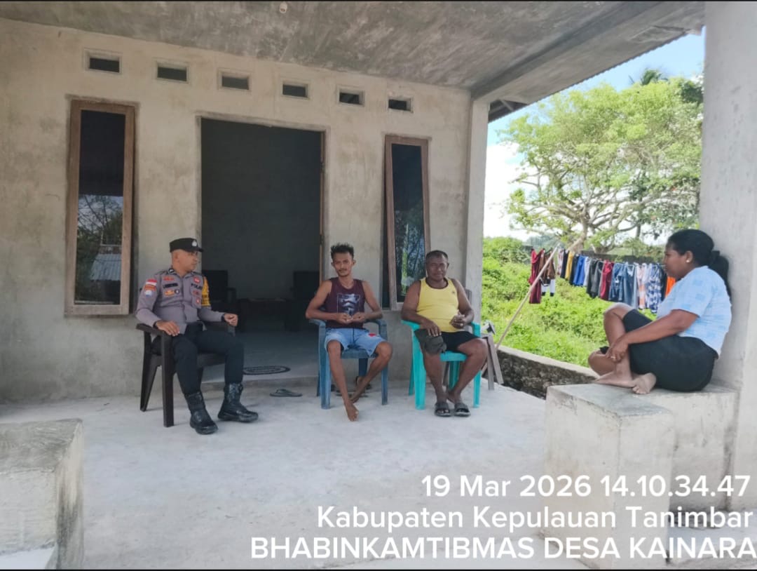 Tribratanews.polrestanimbar.com – Polda Maluku, Kepolisian Resor Kepulauan Tanimbar, Bhabinkamtibmas Desa Kainara, Bripda JIMMY LAMBIOMBIR terus aktif menjalin kedekatan dengan Masyarakat. Hal ini dibuktikan melalui kegiatan sambang rutin menggunakan metode Door to Door System (DDS) pada, Kamis (19/03/26) pagi.