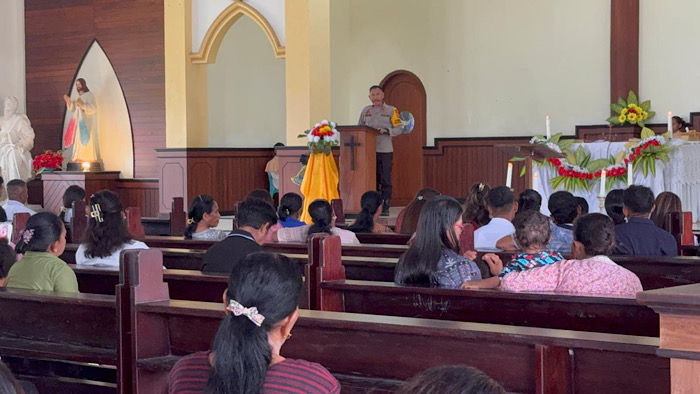 Salah satu langkah yang diambil adalah melalui kegiatan “Mimbar Kamtibmas” yang menyasar pada Umat Kristiani di Gereja Katolik Santo Paulus Desa Bomaki, Kecamatan Tanimbar Selatan, Kabupaten Kepulauan Tanimbar, Minggu (28/12/25) pagi.