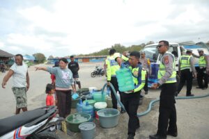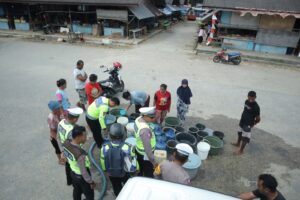“Jumlah air bersih yang didistribusikan sebanyak 2 Truck Tanki Air atau kurang lebih sekitar 10.000 Liter, disalurkan ke Warga” ungkap Kasat Lantas.